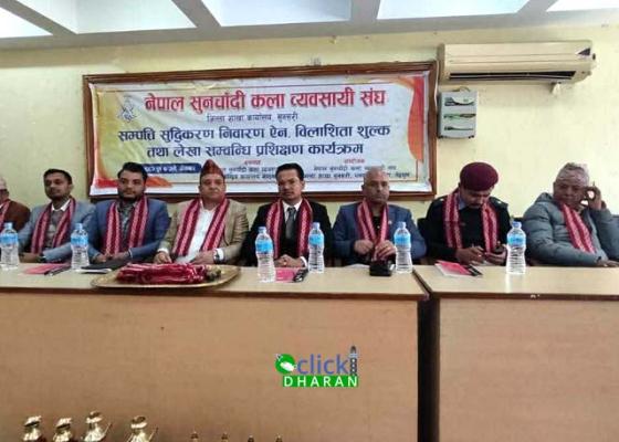 धरान: नेपाल सुनचाँदी कला व्यवसायी संघले सम्पत्ति शुद्धिकरण निवारण ऐन, विलासिता शुल्क तथा लेखासम्बन्धि प्रशिक्षण कार्यक्रम गरेको छ । संघको सुनसरी जिल्ला कार्यसमितिले सोमबारव्यवसायीहरुलाई प्रशिक्षण गरेको हो । संघका सुनसरी अध्यक्ष प्रदिप गहतराजको अ ...