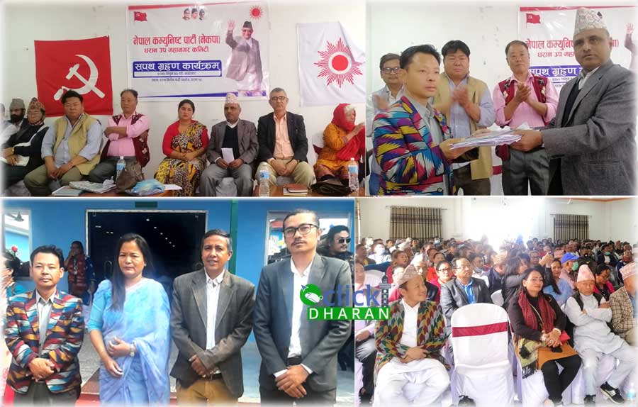 धरान: आइतबार दिउँसो धरान १५ दशरथपथस्थित होटल धरान किचनमा नेकपा ओली समुहको धरान उपमहानगर कमिटीको विस्तार तथा सपथ ग्रहण कार्यक्रम भइरहेको थियो ।