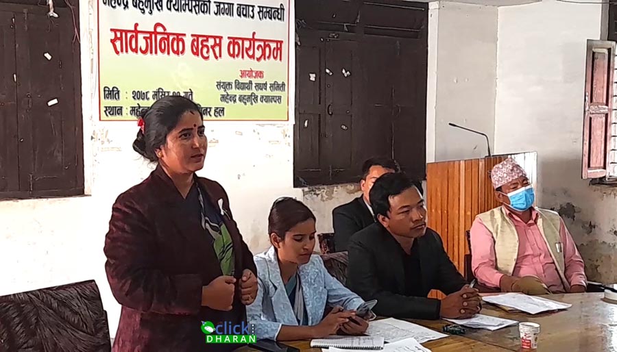 सर्वोच्च अदालतबाट फैसला भइसकेको सर्दु जलाधार क्षेत्रको जग्गा राज्यको नाममा आइरहेको उदाहरण दिदै क्याम्पसको जग्गा पनि संरक्षण गर्ने बताइन् । ‘सर्वदलीय संयन्त्रबाट बाँडिचुडी गरिसकेको जलाधार त सरकारको नाममा फिर्ता ल्यायौ, सर्वोच्चको फैसला त उल्टियो,’उनले भनिन्,‘यो बिषयमा तपाईहरुलाई लाग्ला पैसाको चलखेल भयो, तर मलाई एक रुपैया पनि कसैले लिएको प्रमाण दिनुभयो भने राजिनामा दिन्छु । स्थानीय तह, वडाको जिम्मेवारी भित्रको सिफारिश मात्र भएको हो, जग्गा दिने भएको होइन ।’